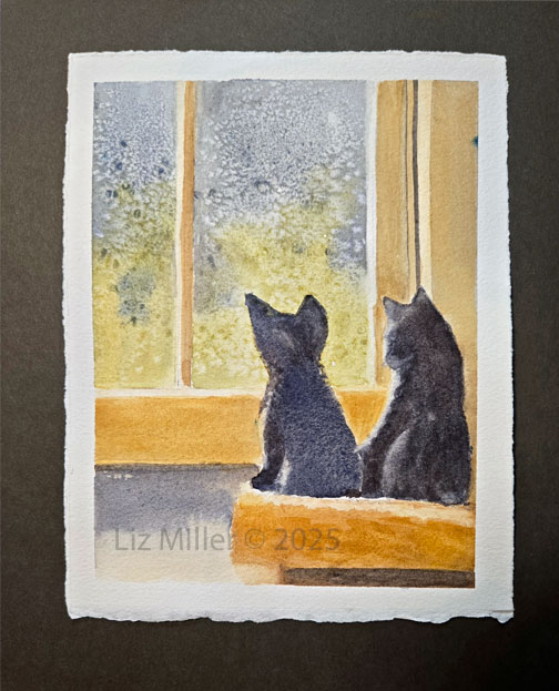 Kittens at the Window Watercolor $6
